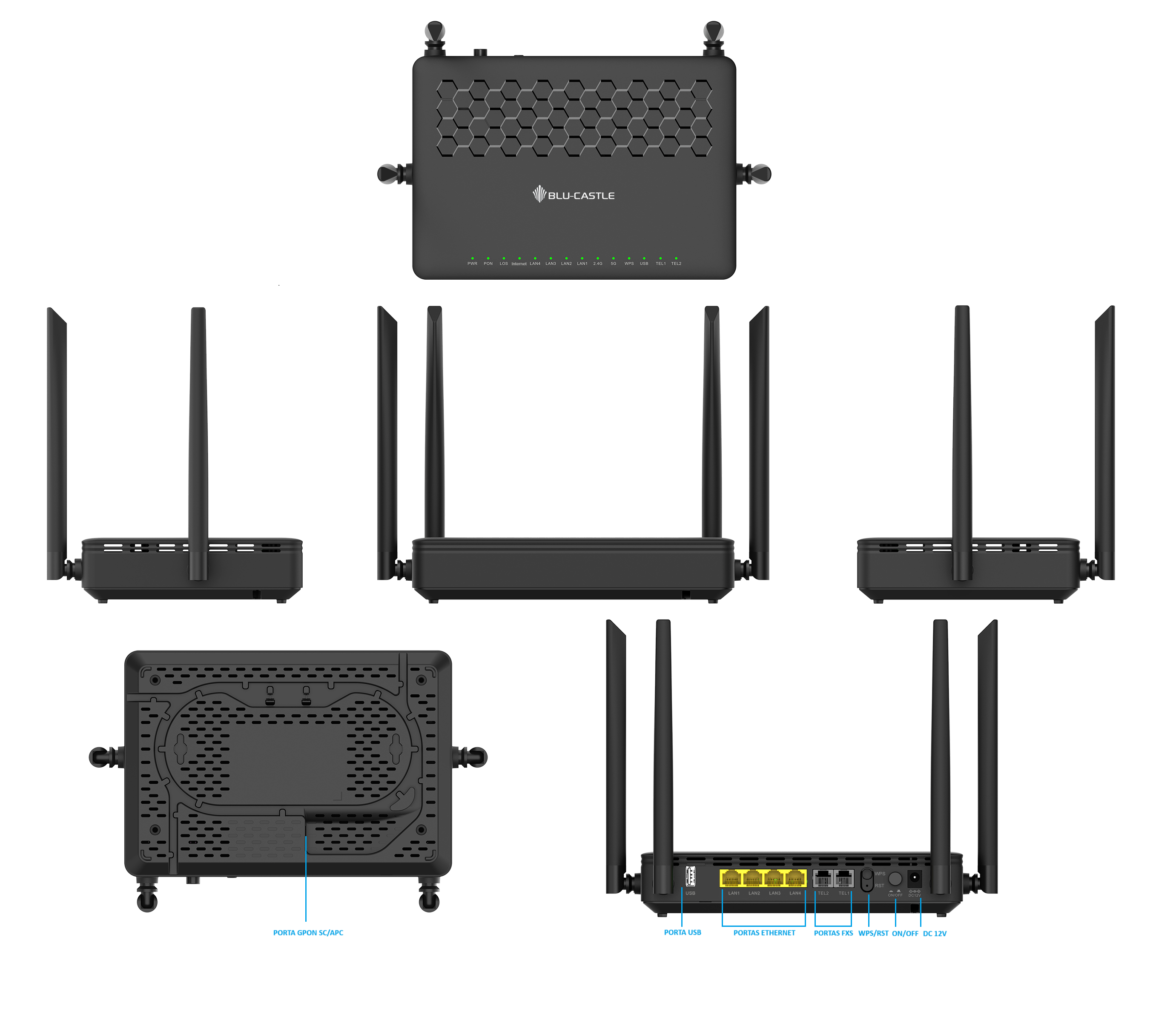 - ONU GPON com 4 portas LAN Gigabit Ethernet;